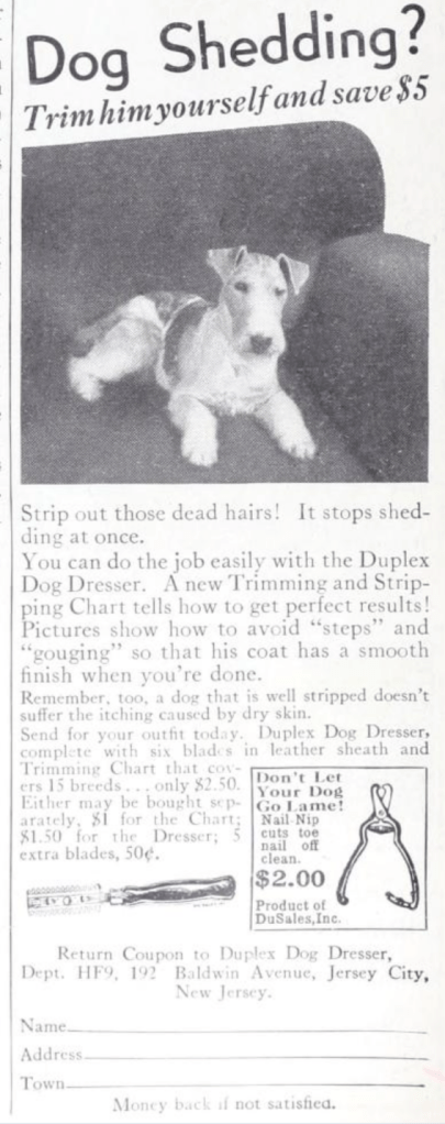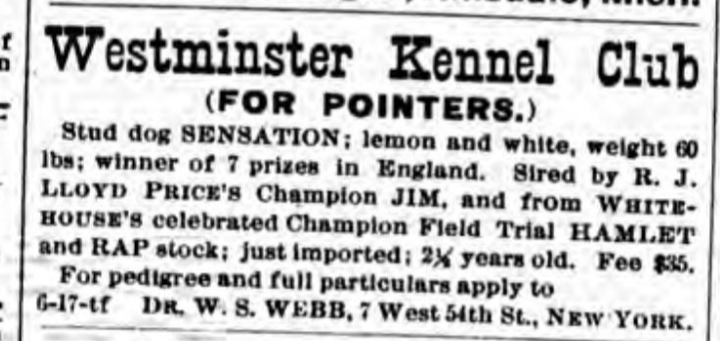 An ad in the Catalogue of dog, cat and pet stock show: Panama-Pacific International Exposition, November 29, 30, December 1, 1915