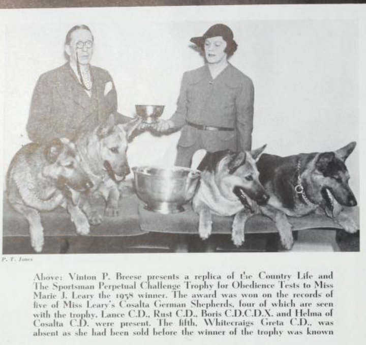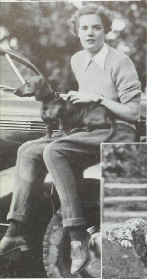 Two women showing their poodles at the Morris and Essex show in New Jersey from Country Life & the Sportsman, July 1938