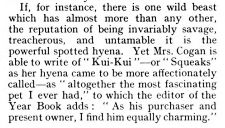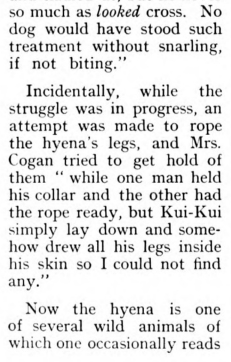 Something unexpected: the notion that hyenas can suck their legs up into their bodies as a (not actually that great) defense:
