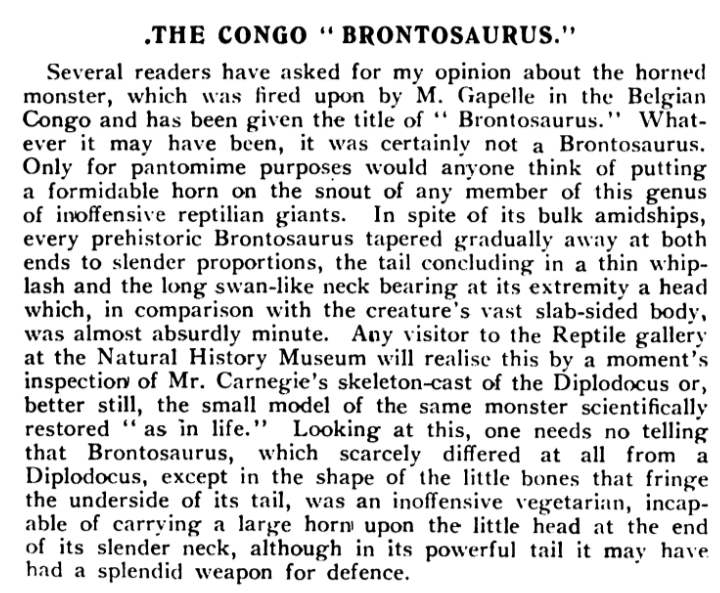 Another contemporaneous response to the 1919 Congo Brontosaurus story