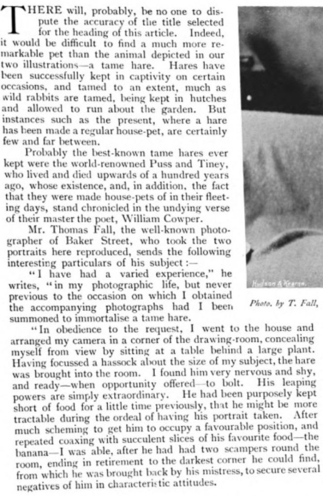 Although wild animals as pets were not rare at the turn of the century, hares were not usually among them. I read this short article with interest and share it here in the hope that some of you will enjoy it too.