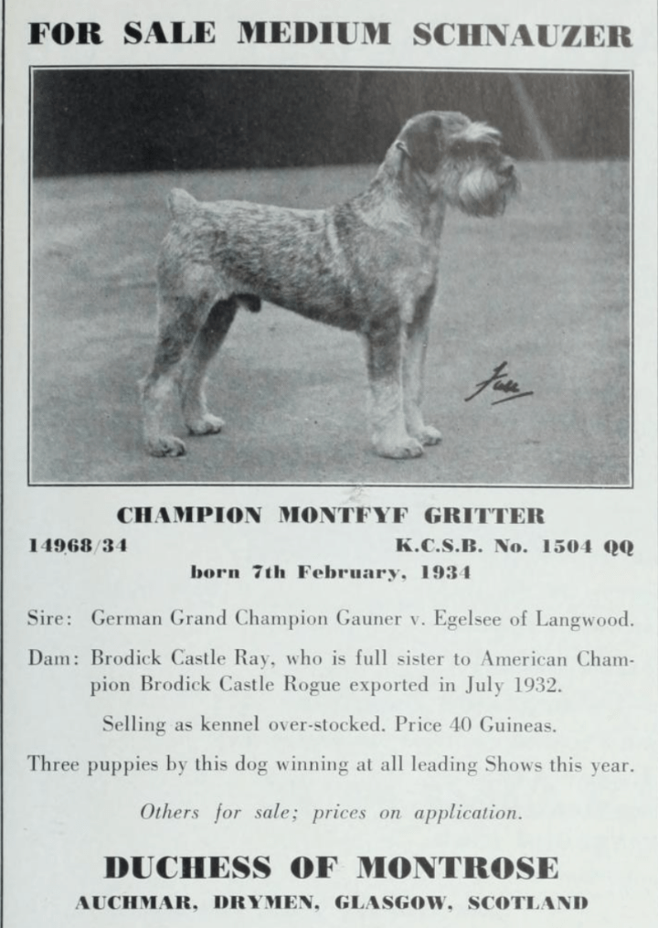 An ad in the Catalogue of dog, cat and pet stock show: Panama-Pacific International Exposition, November 29, 30, December 1, 1915. Note the differences between this airedale and the one in the first photo, both from the UK, almost 20 years apart.Vanity Fair, September 1916Country Life & the Sportsman, May 1938