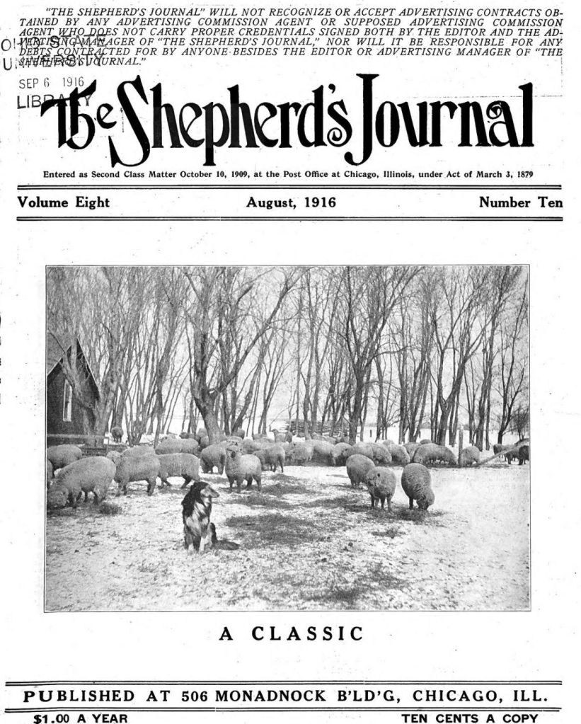 A sheepdog trial in England Country Life Illustrated, August 21, 1897Source for four images above: Askins, C. (1912, November 2). Collies in their kindergarten. The Country Gentleman, p. 6.Source for two images above: Askins, C. (1912, November 16). Shep at work. The Country Gentleman, p. 7.Cover of The Breeder’s Gazette, January 15, 1914The Shepherd’s Journal, April 1916The Shepherd’s Journal, August 1916The Rural New-Yorker, May 19, 1917Cover of The Breeder’s Gazette, December 25, 1919
