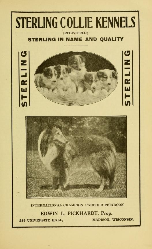 Source: Eberhart, Alvin George. (1917). Everything about dogs. Pub. for the Eberhart kennels, Camp Denison, O., by the Field and Fancy Pub. Corp.